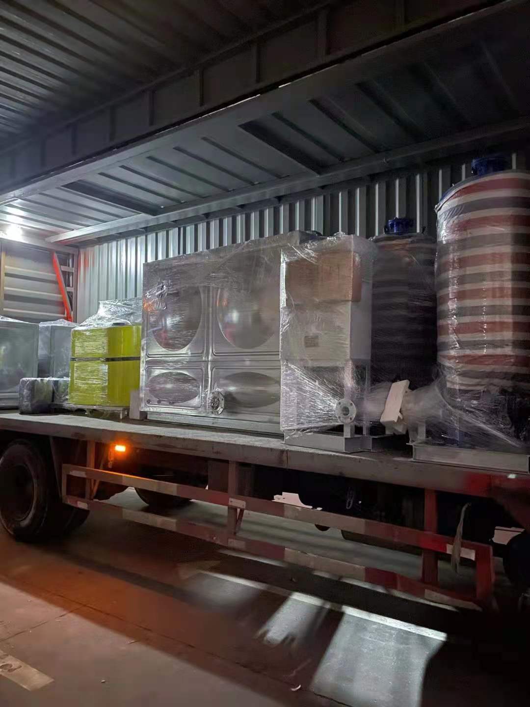 南寧宜家項目和徐州中科項目:一批智能加藥裝置和智能定壓補水裝置及不銹鋼水箱等一批水處理設(shè)備裝車發(fā)貨完成,同事們辛苦了,上海奧棟承諾必達!